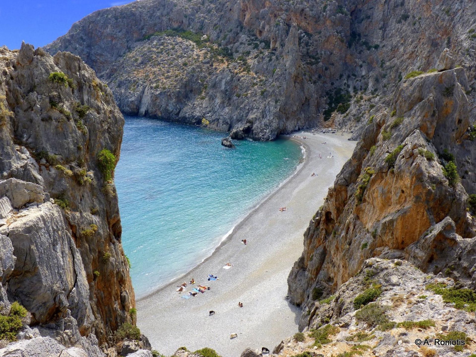 You can cross the canyon and admire the rare beauty as well as the old church, Agio Antonio (St. Antonio), which was the area's religious centre during the time of the hermits. In the church's yard there is a well, which still has drinkable water. Around half an hour's walk further down, you can enjoy a swim and relax at the beach.